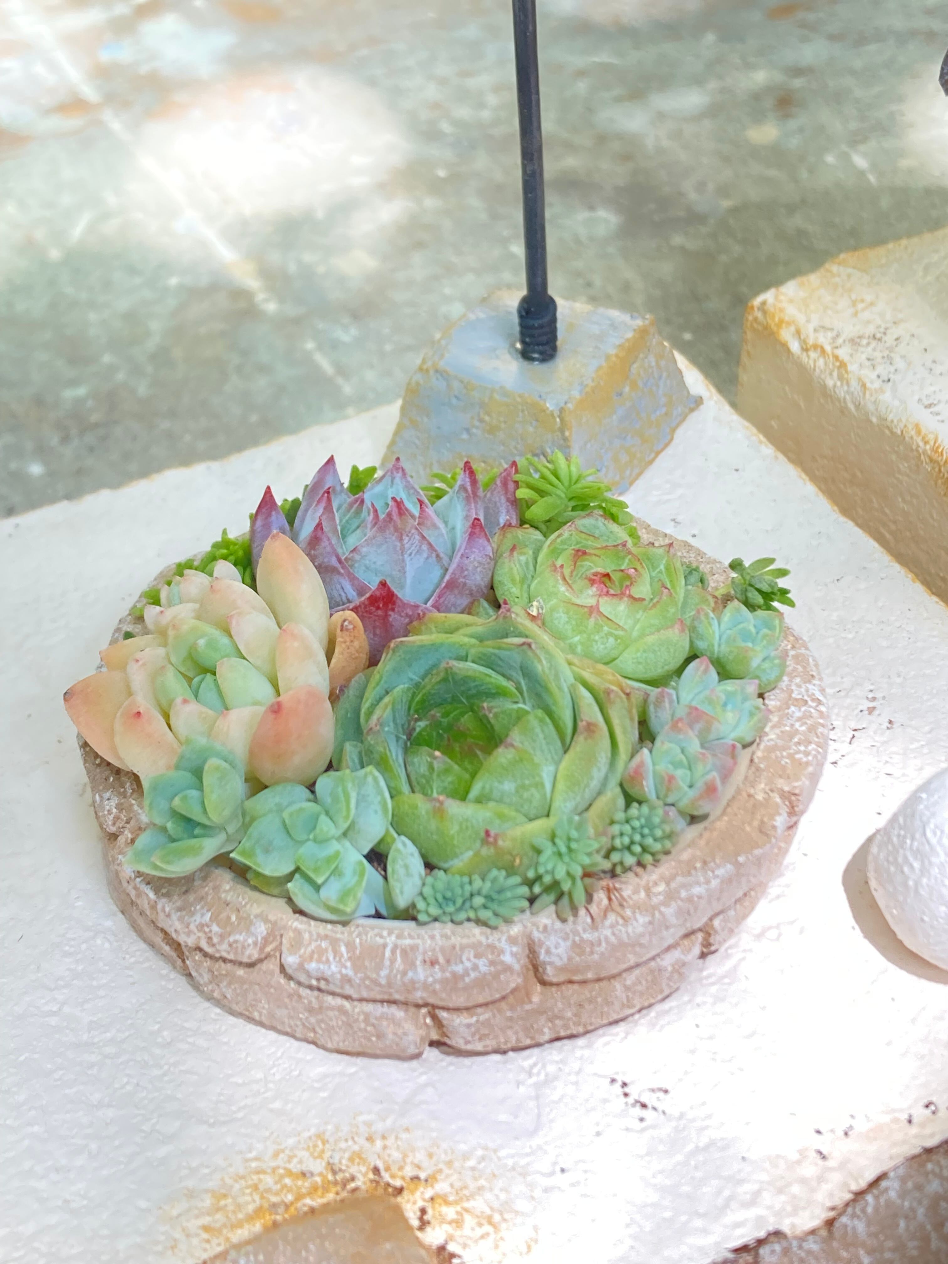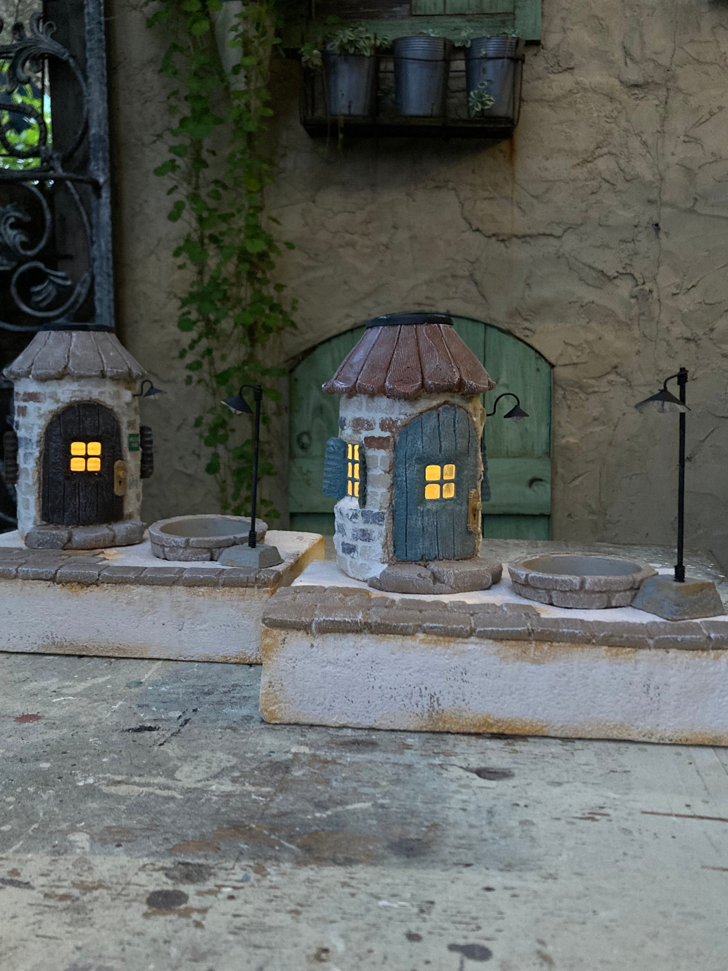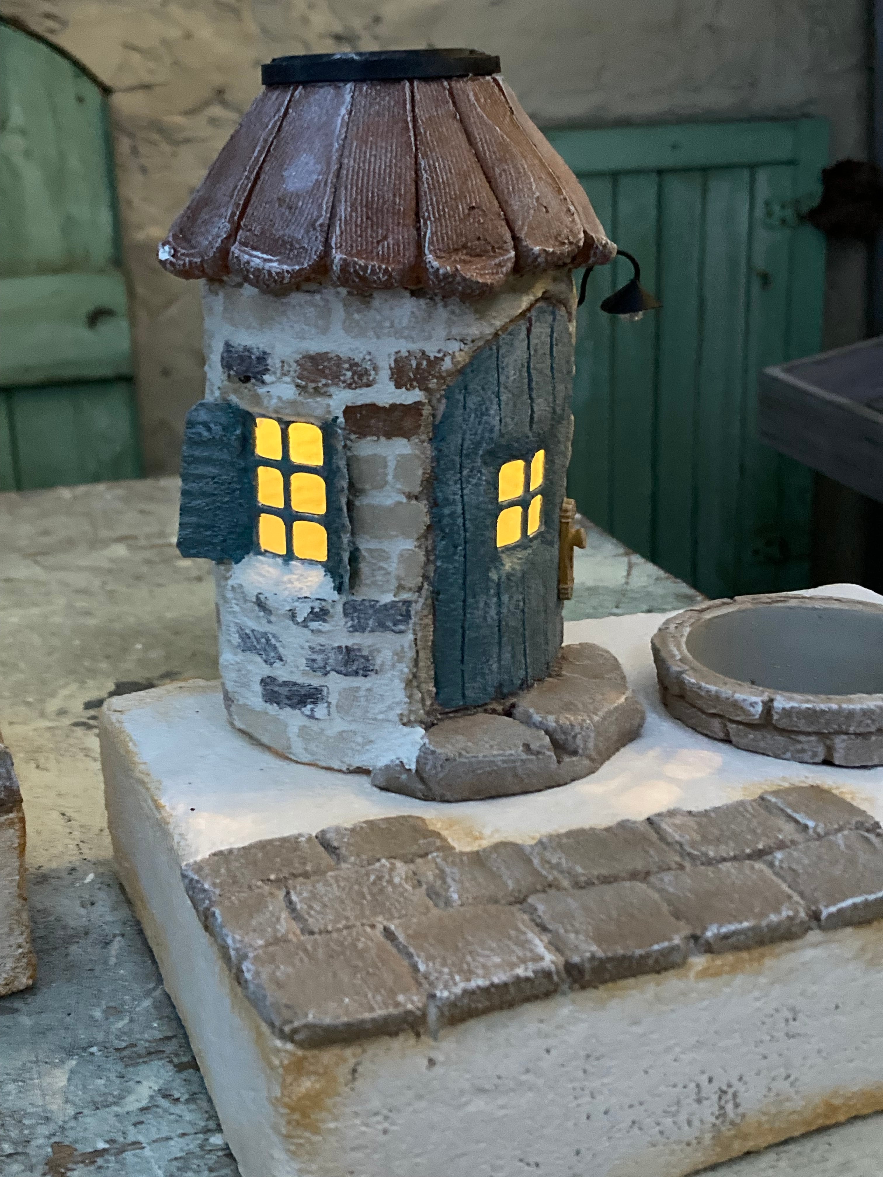 モルタルを使いソーラーライトのモルタルハウスとガーデンベースが完成しました