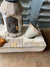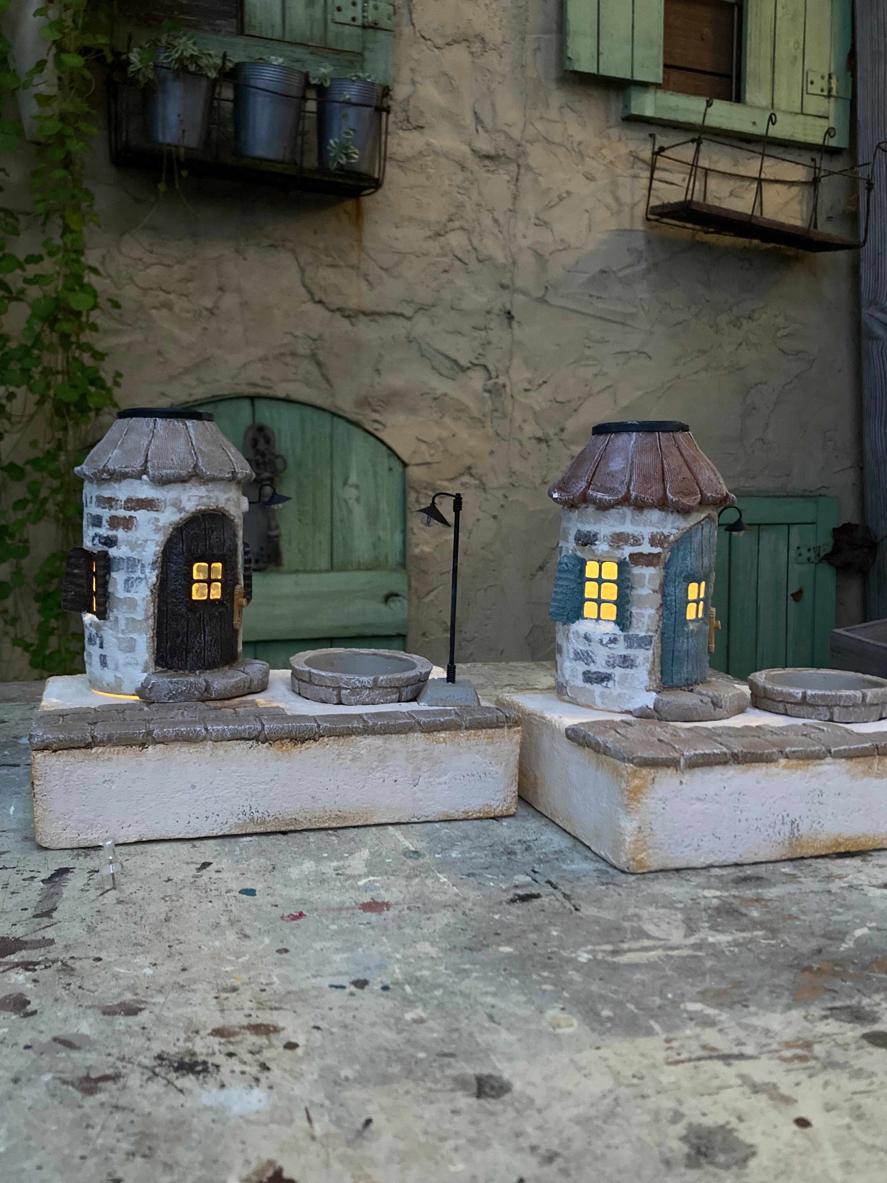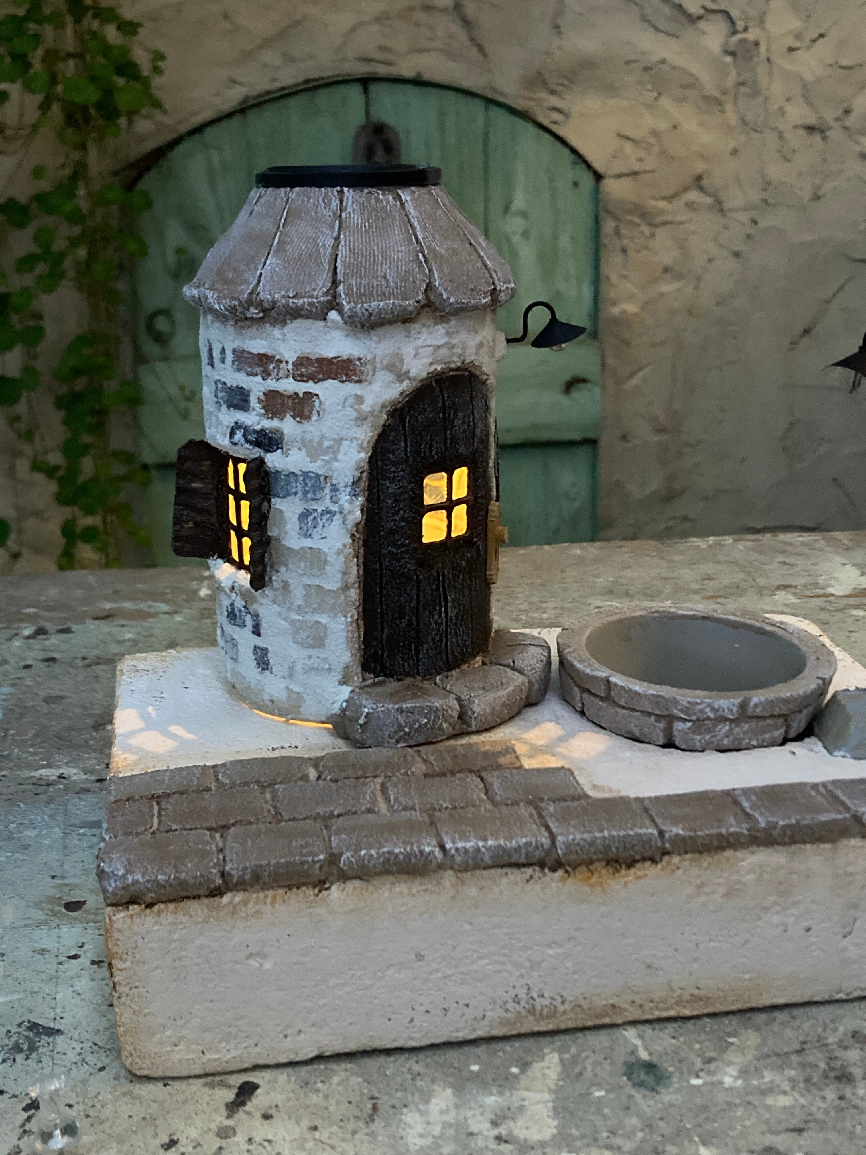 モルタルを使いソーラーライトのモルタルハウスとガーデンベースが完成しました