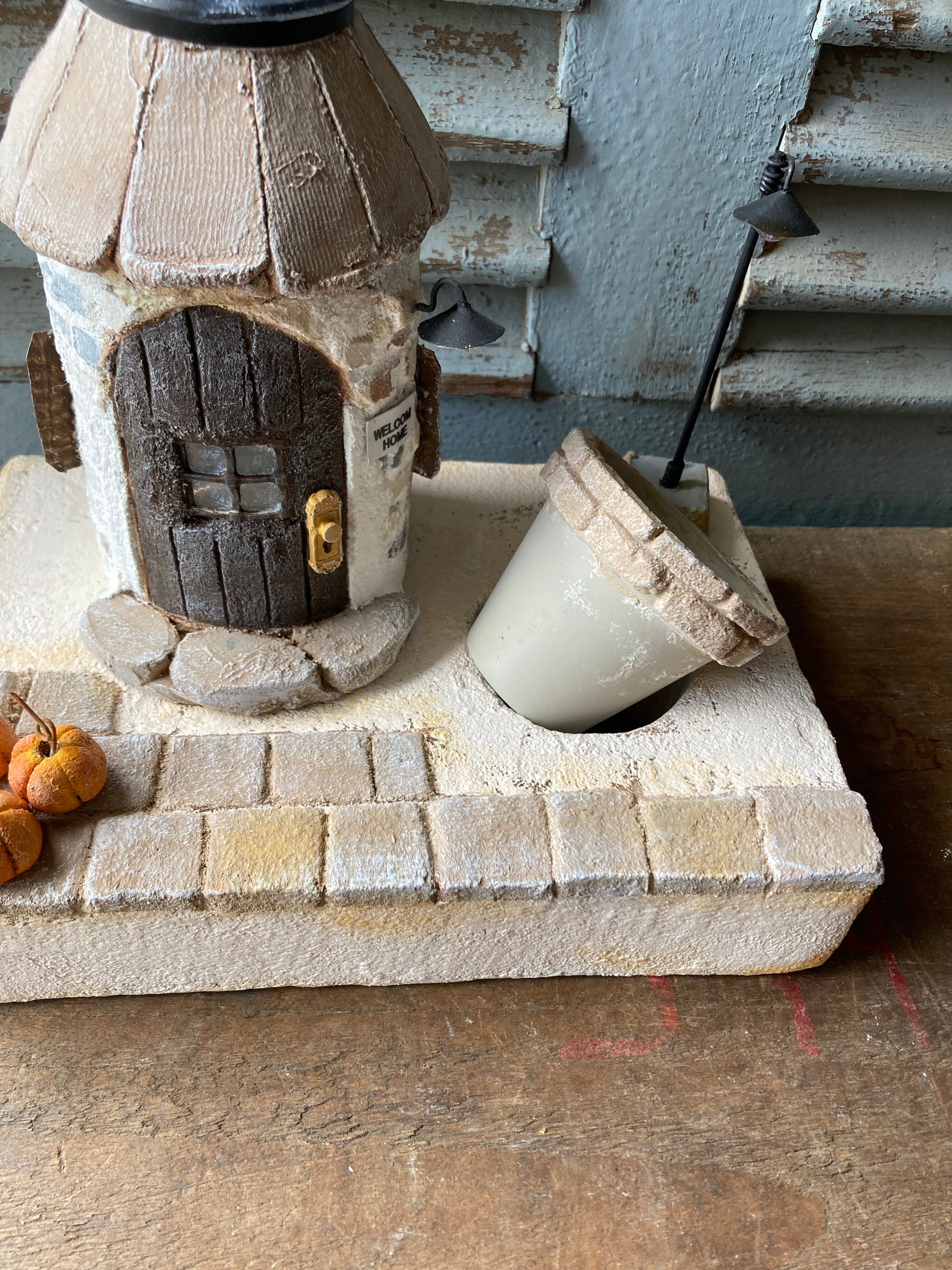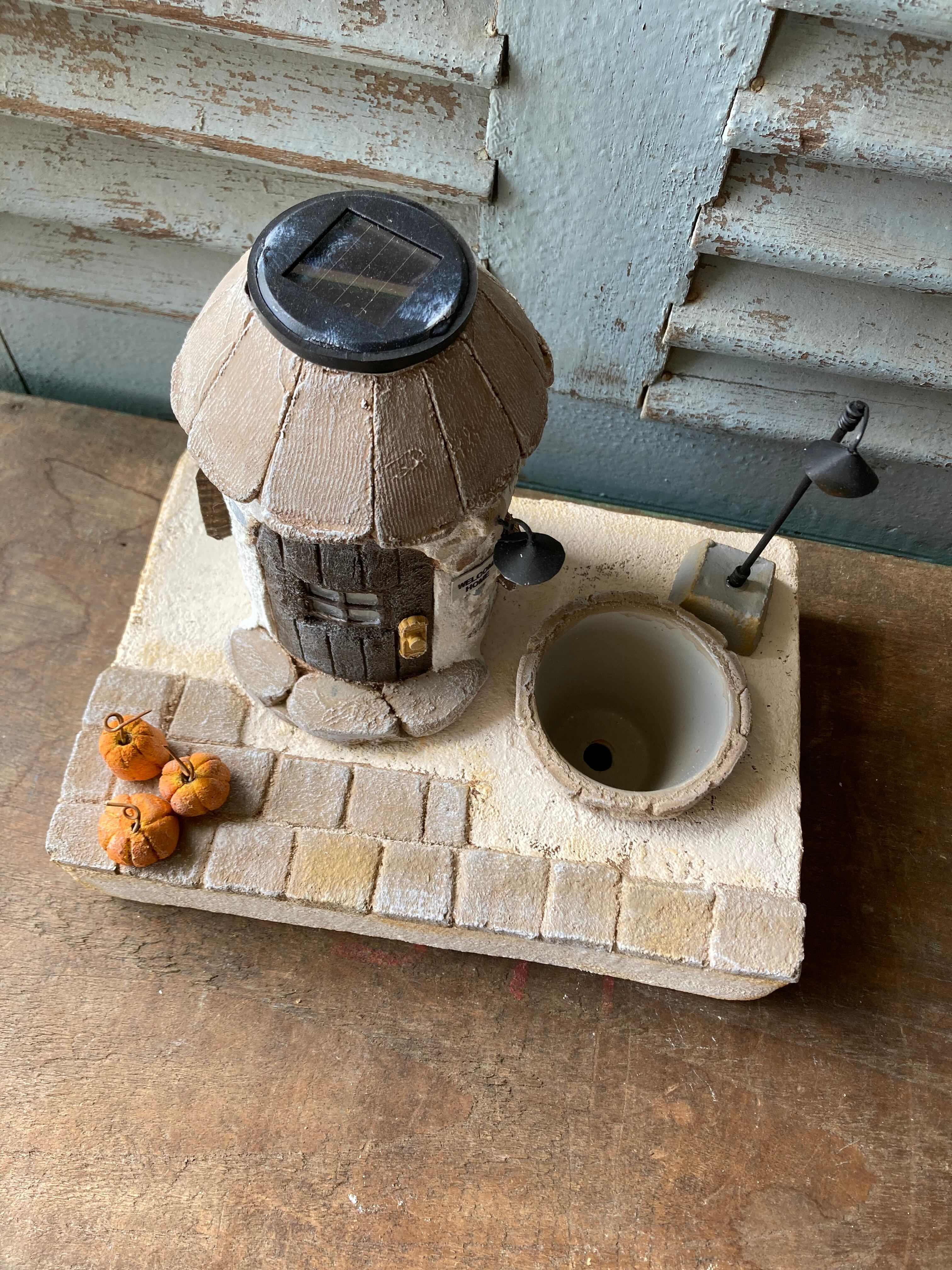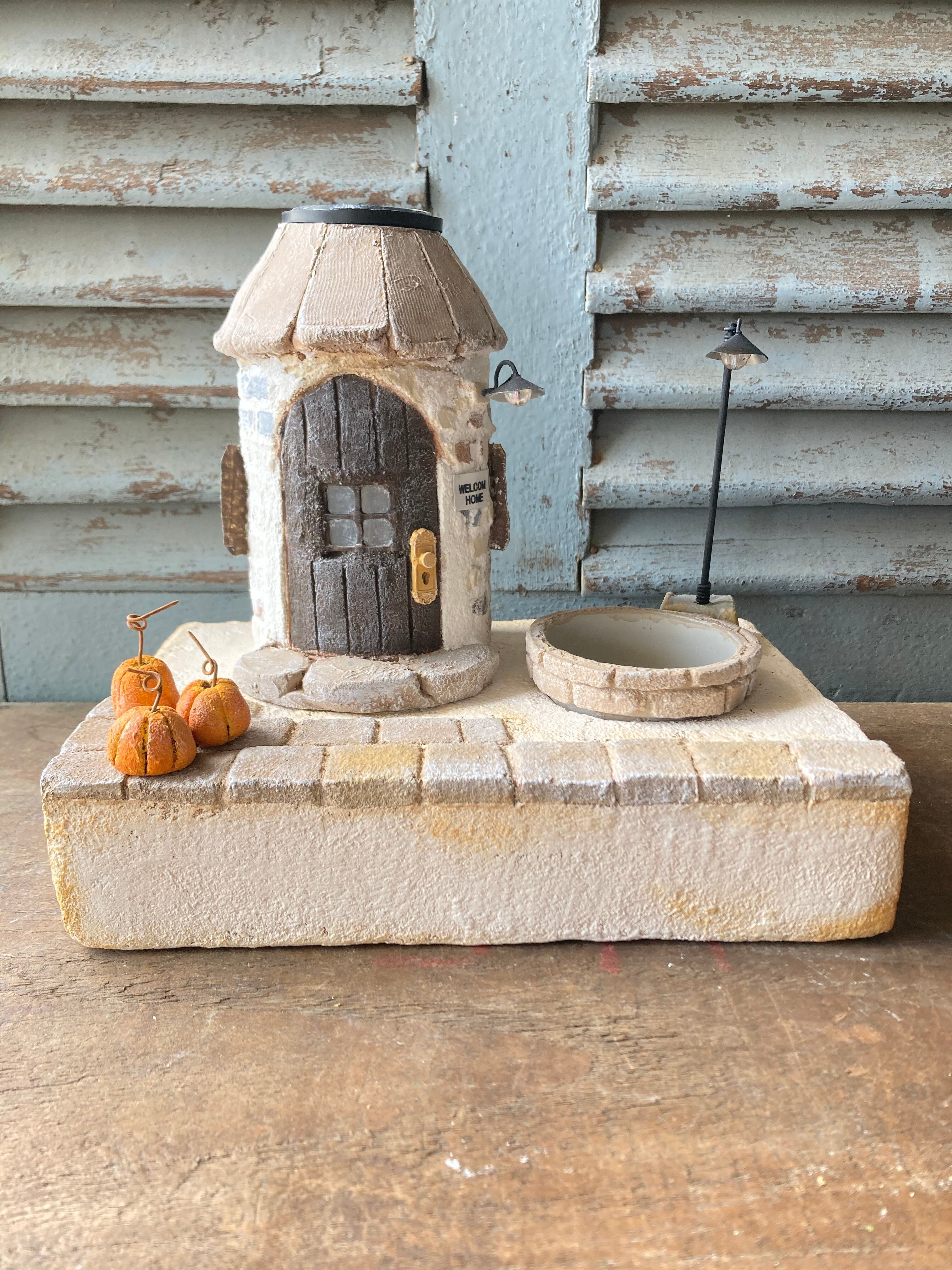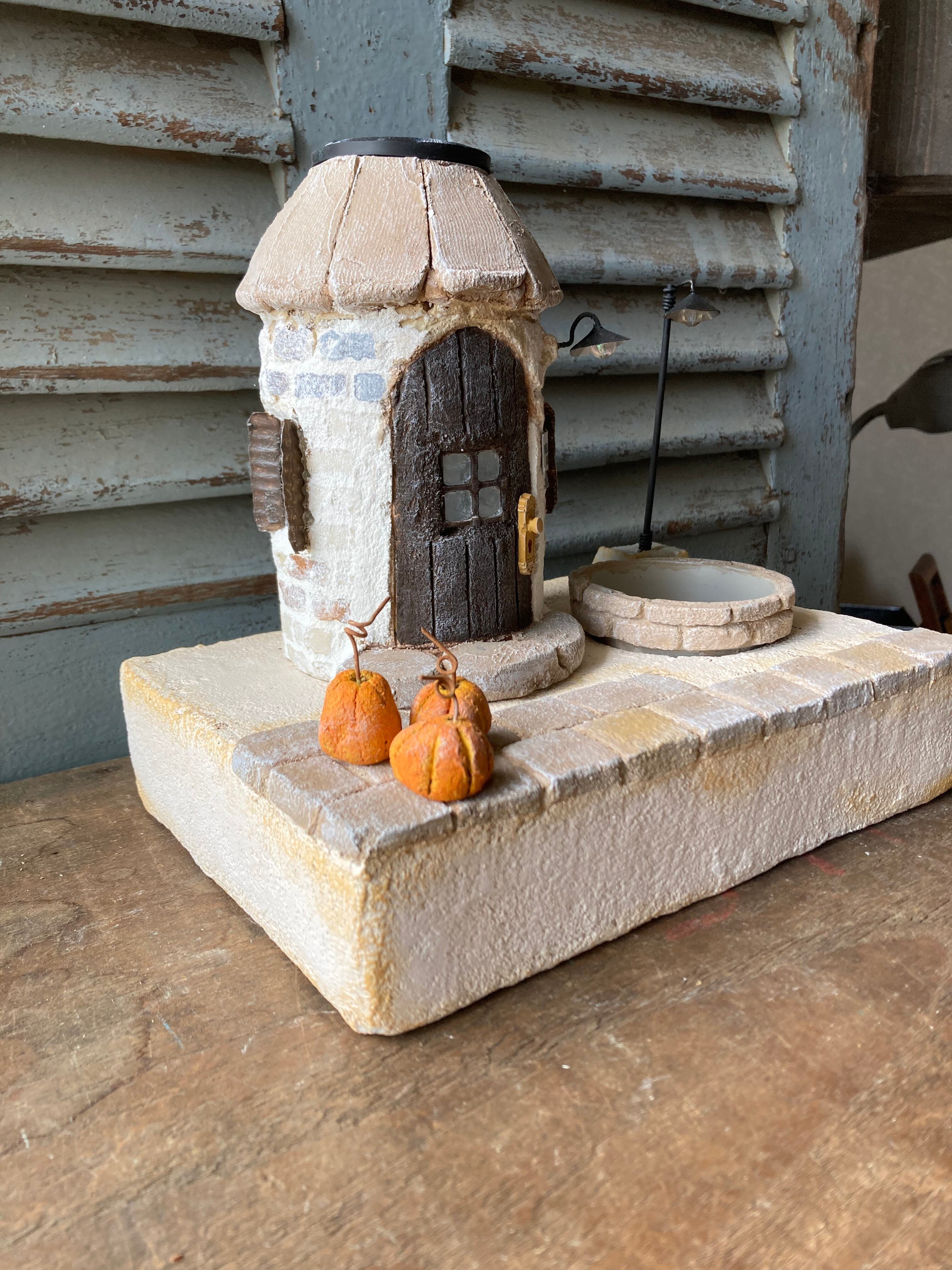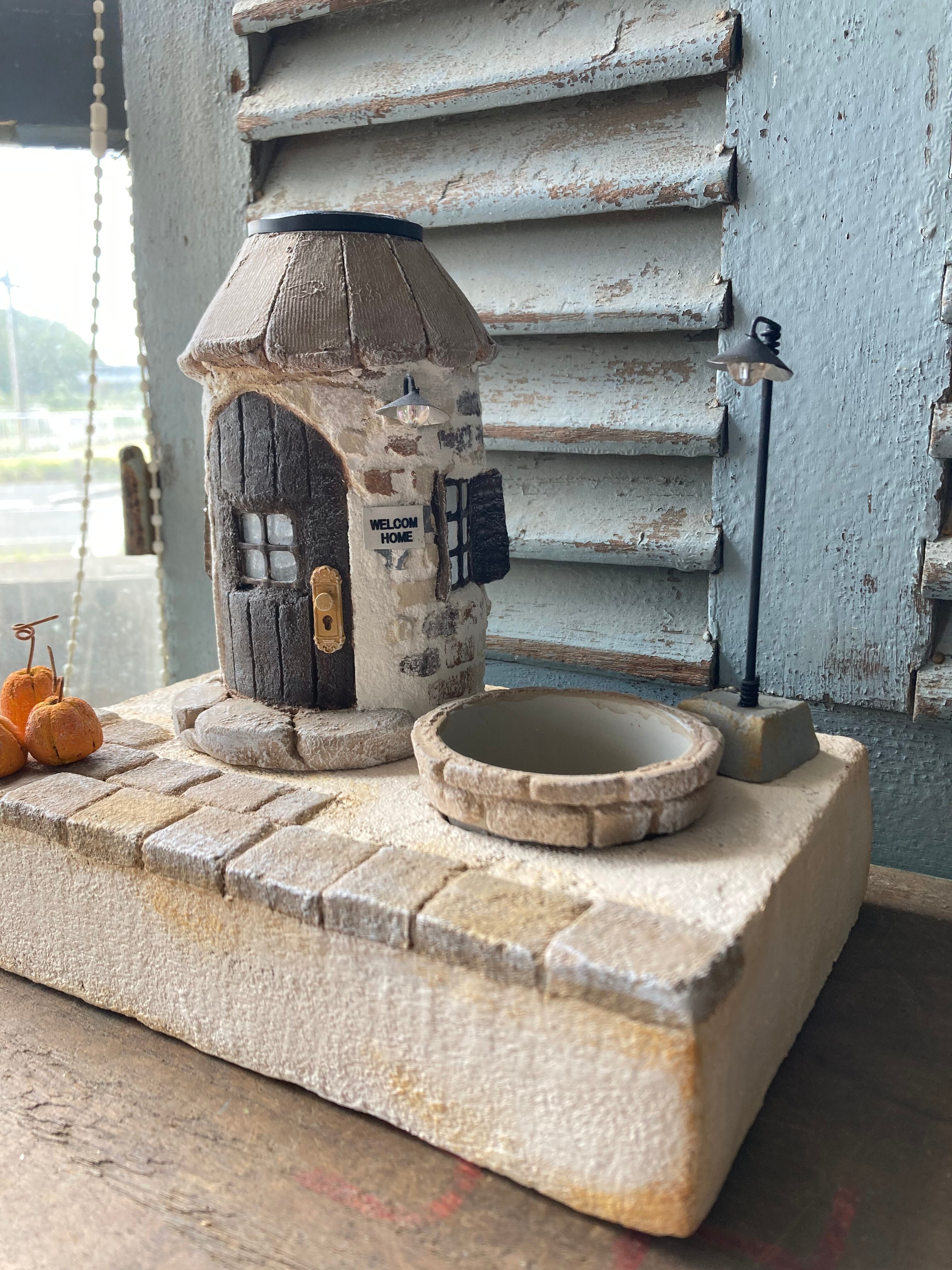 ソーラーライトのモルタルハウスとガーデンベース(ブラウン)