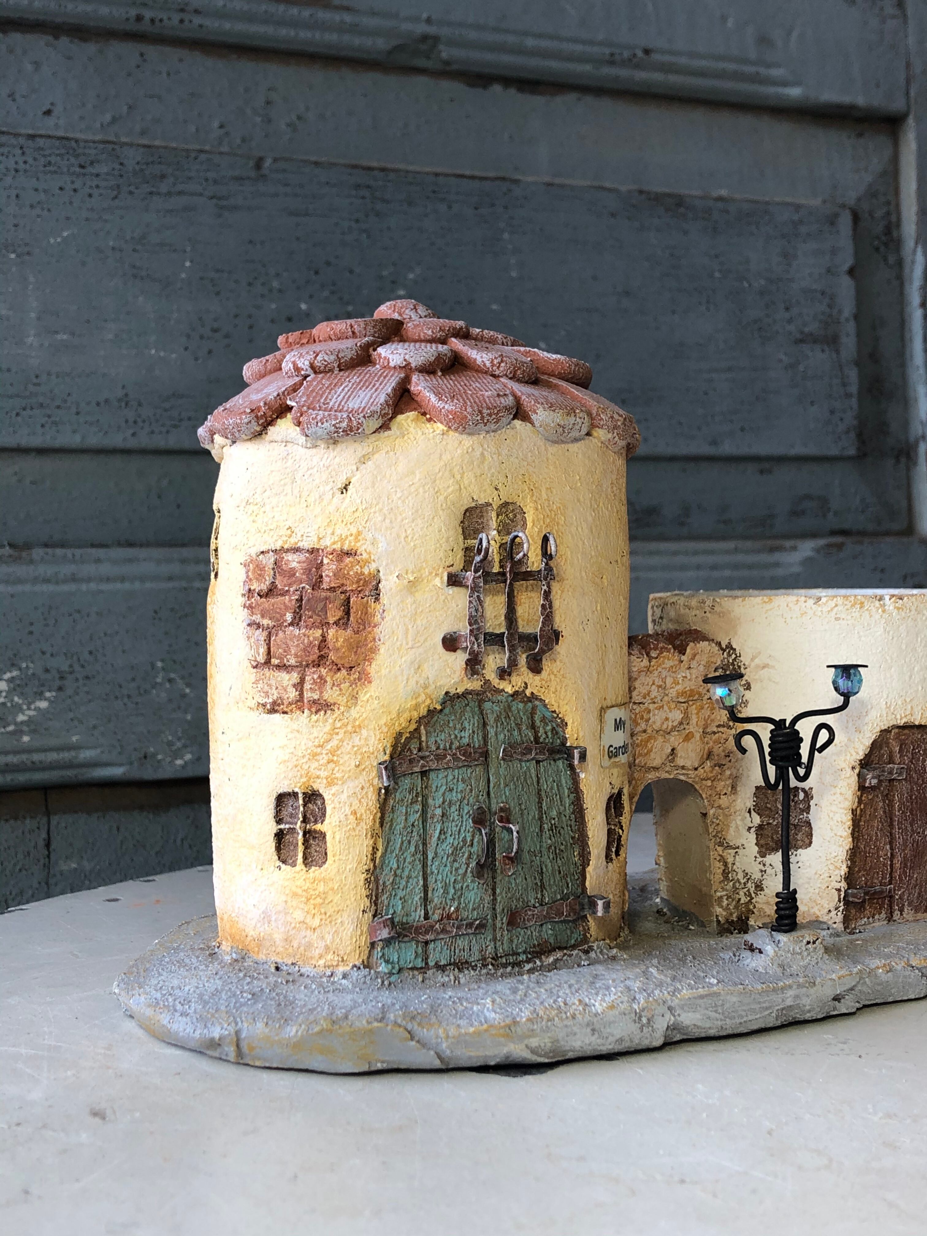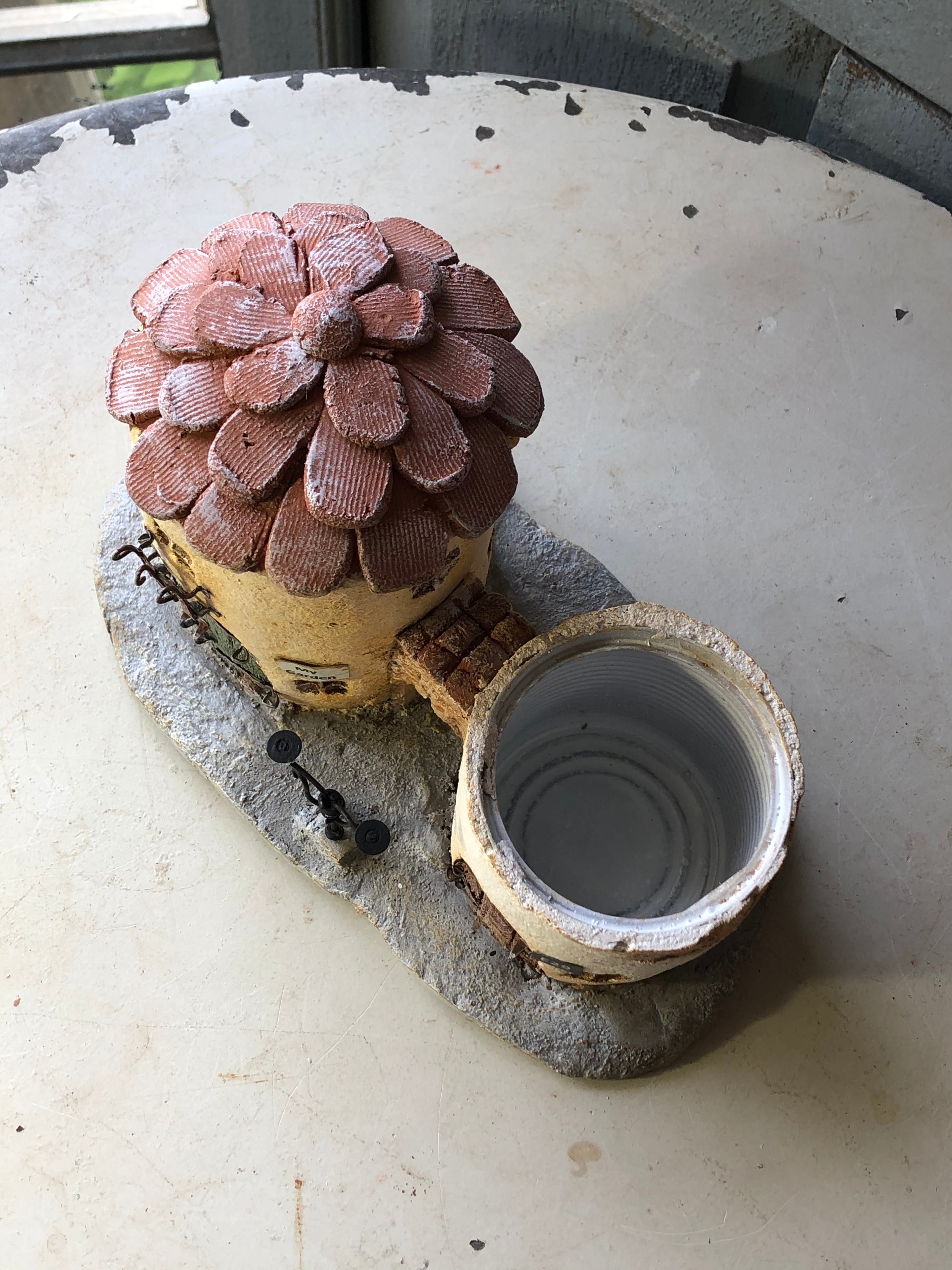 缶にモルタルを施して