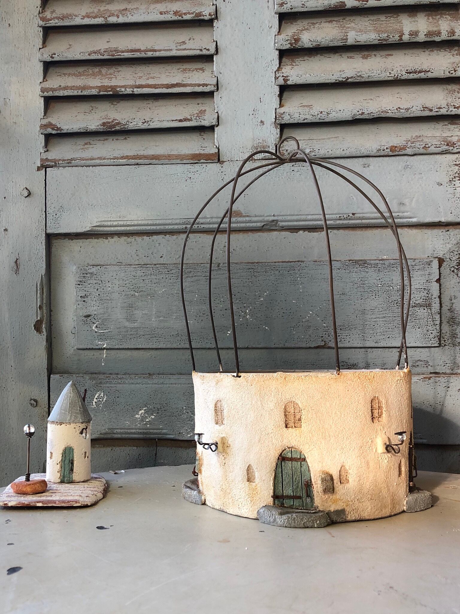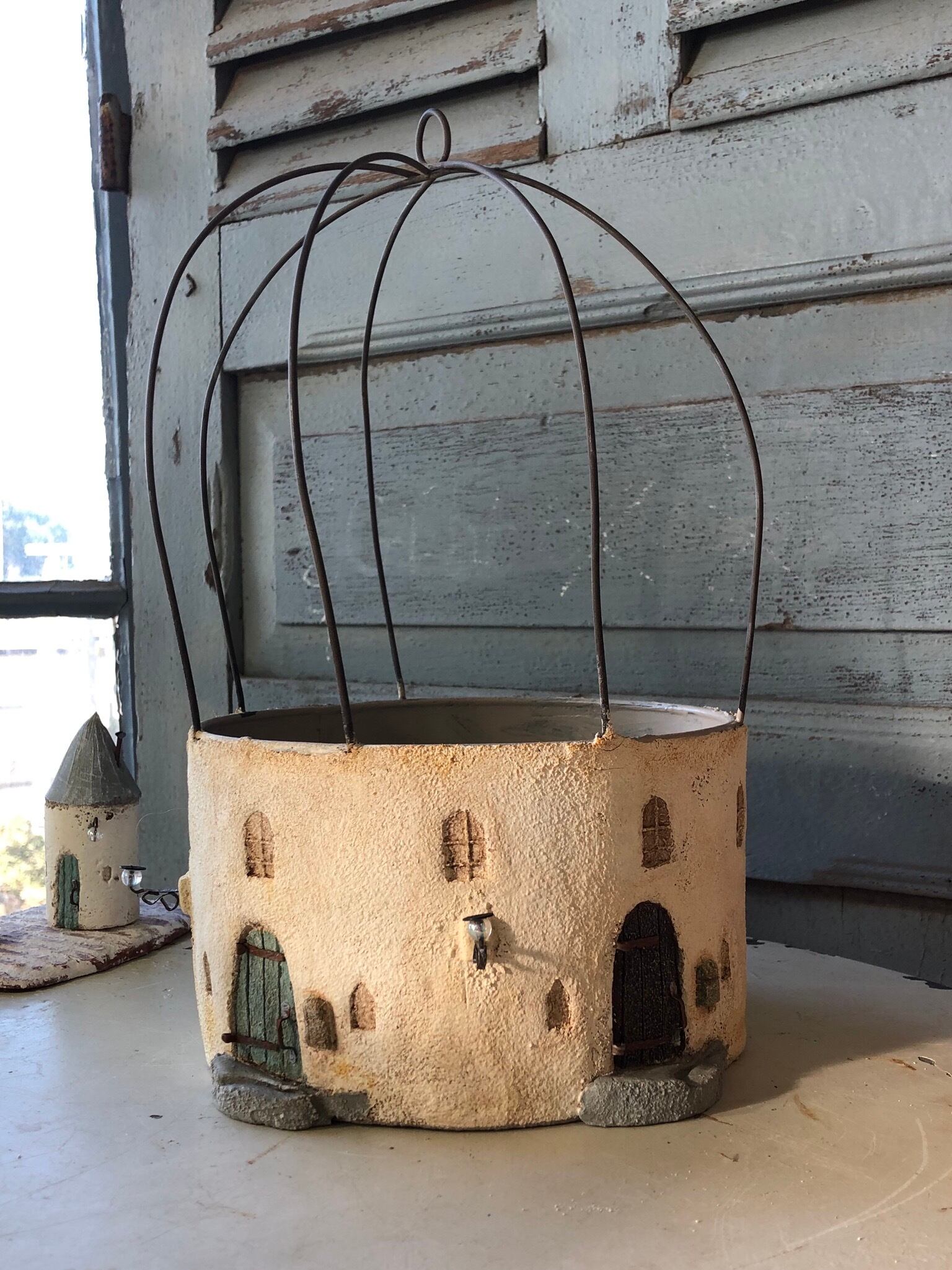 ブリキのポットにモルタルを施して