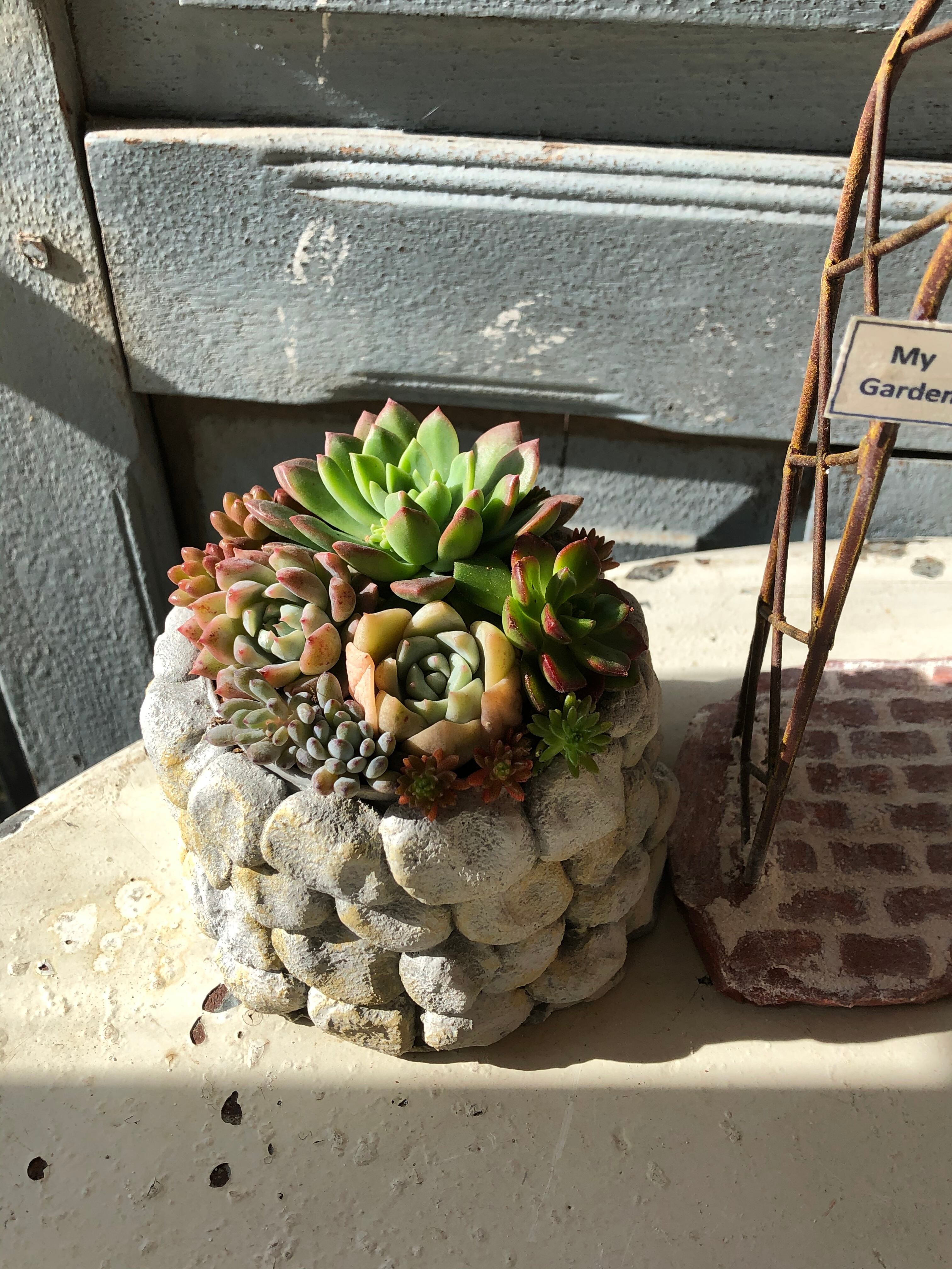 花壇には多肉や小花を植えて