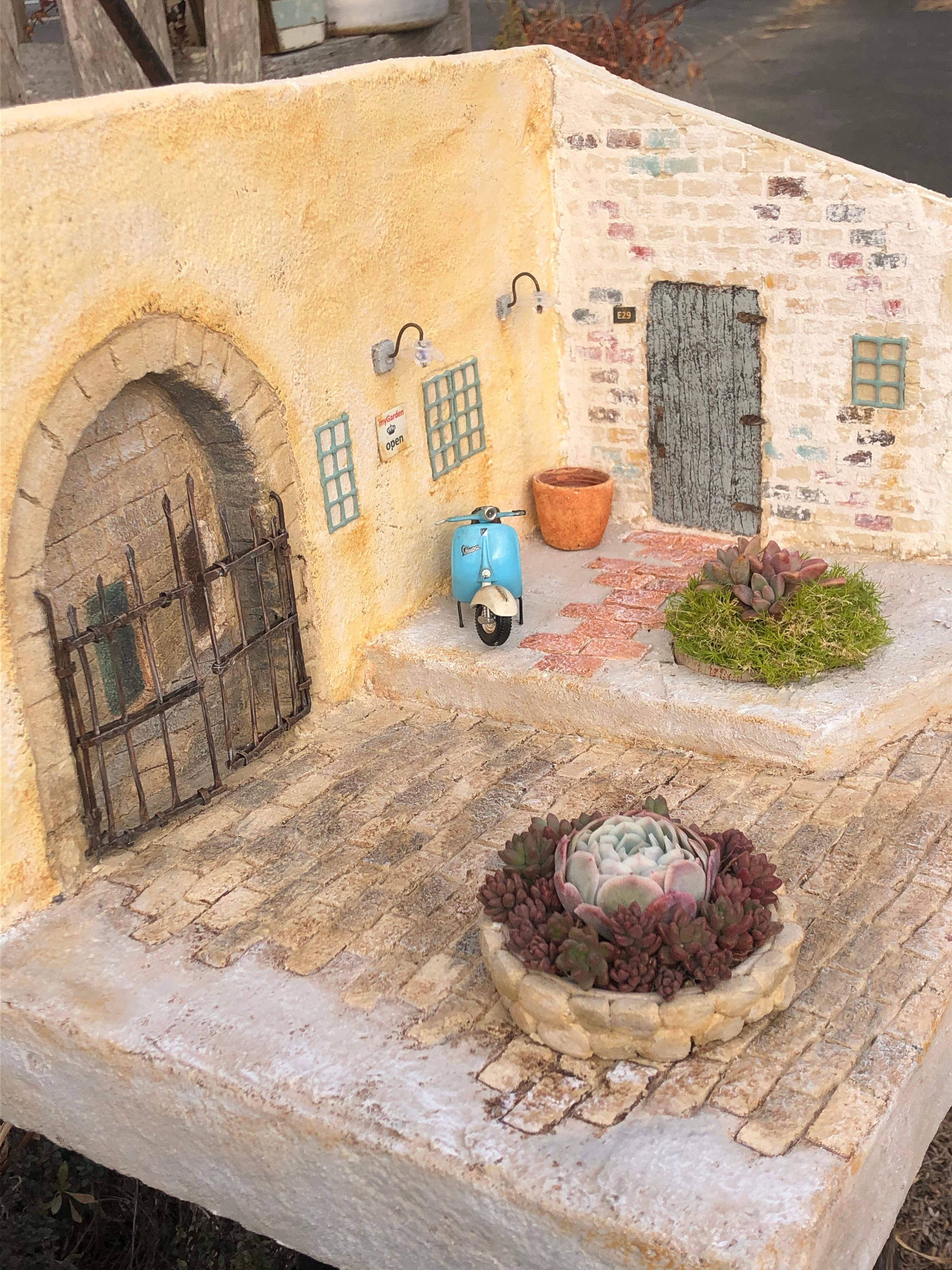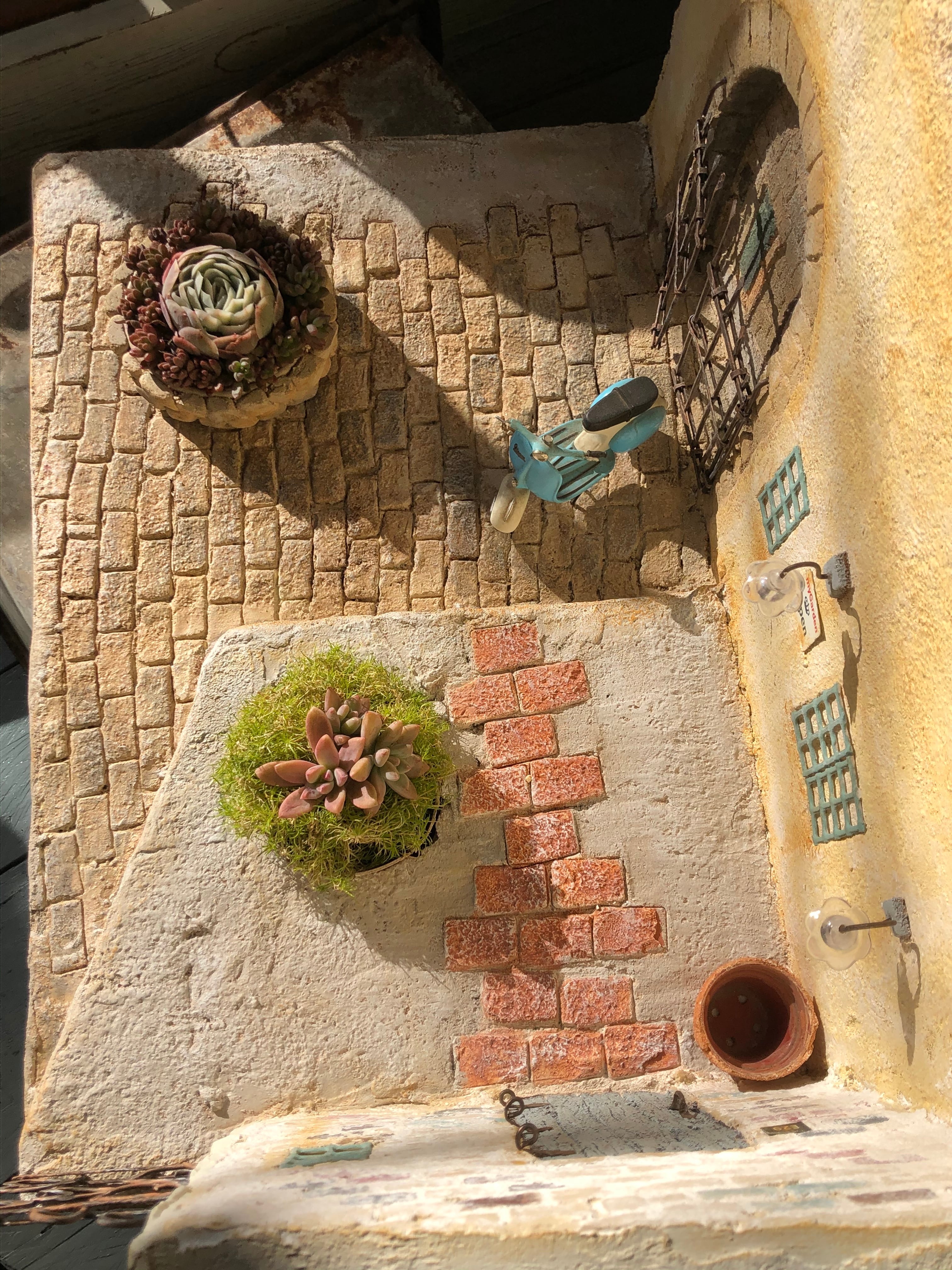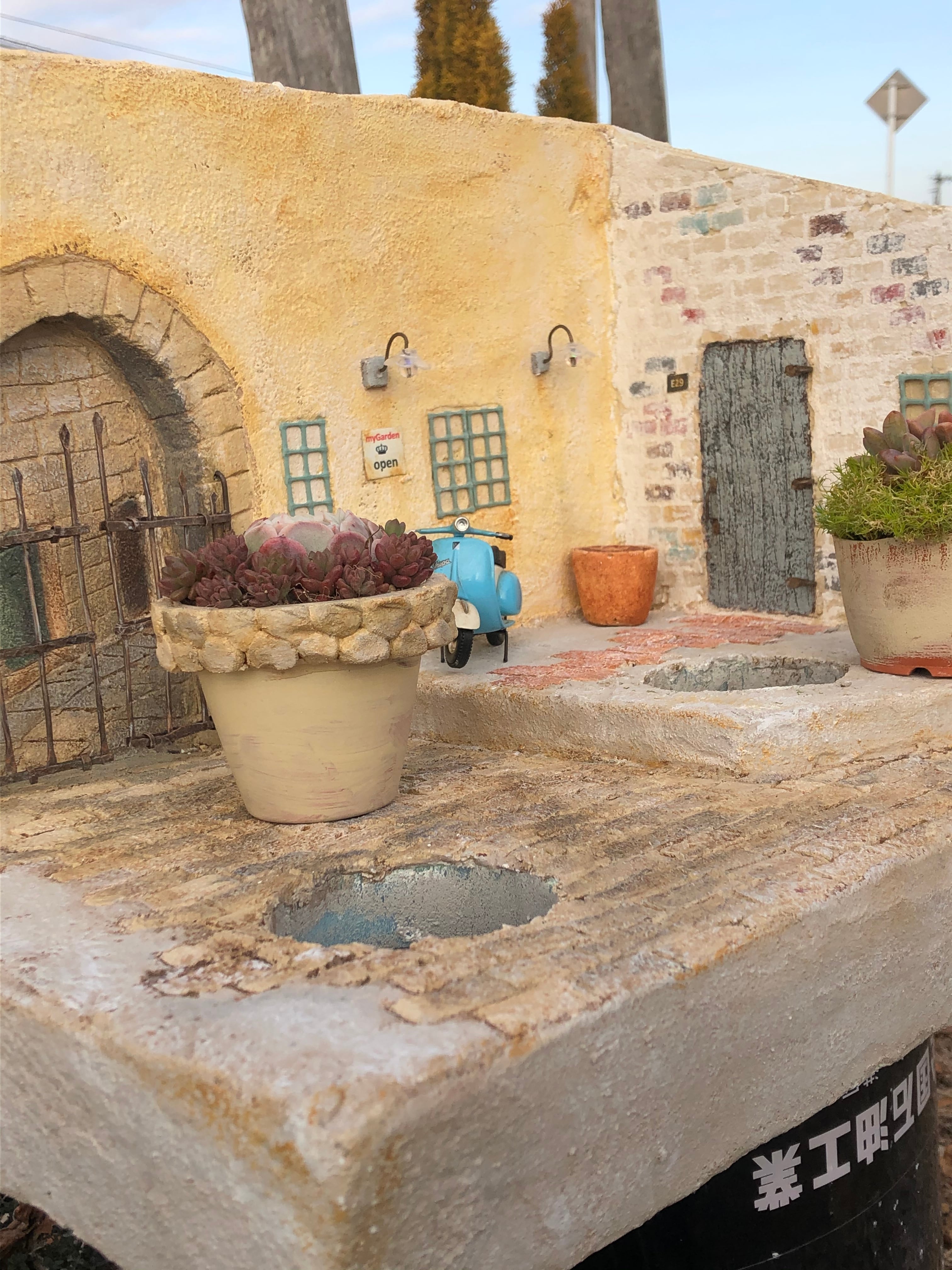 *ミニチュアのバイクやポットに植えられた