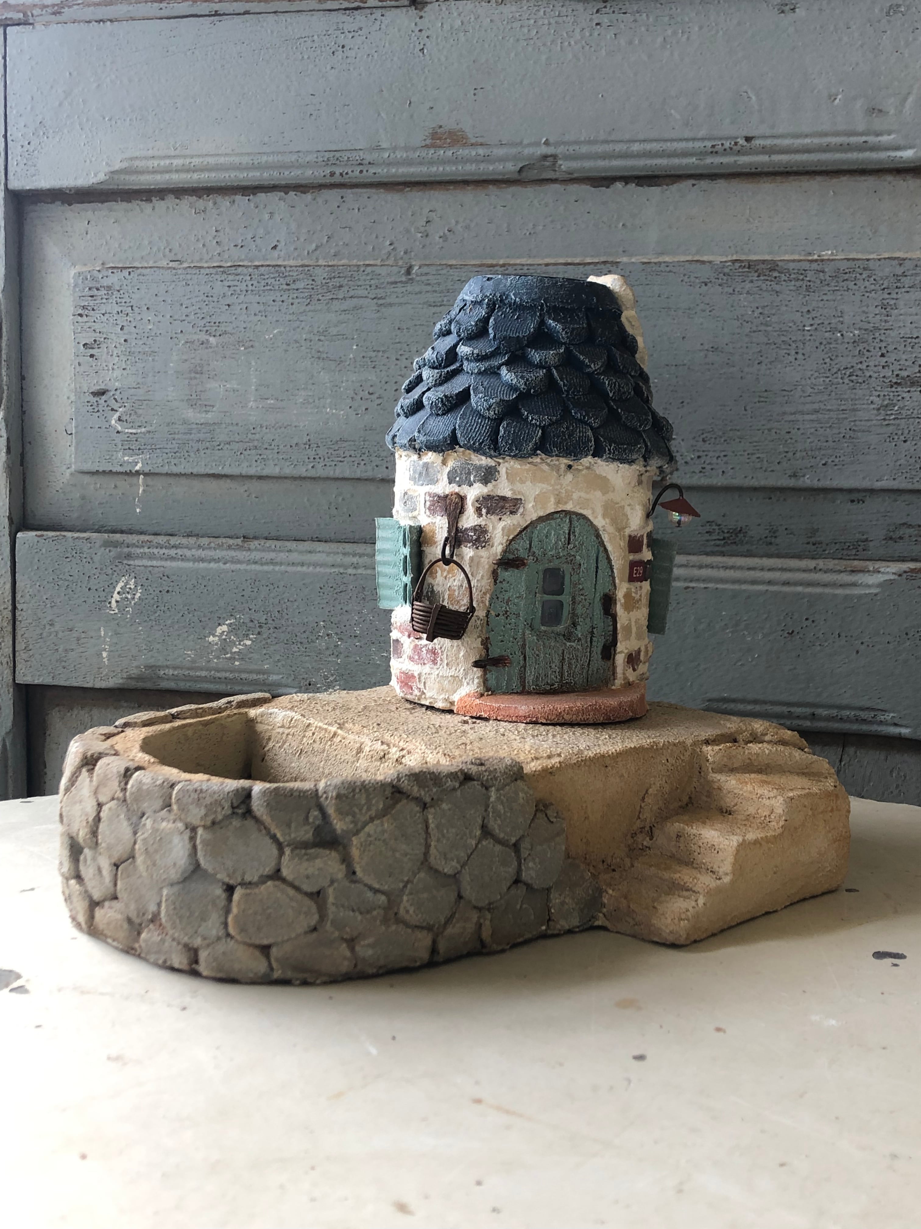 ソーラーライトのモルタルハウスSとガーデンベースのセット