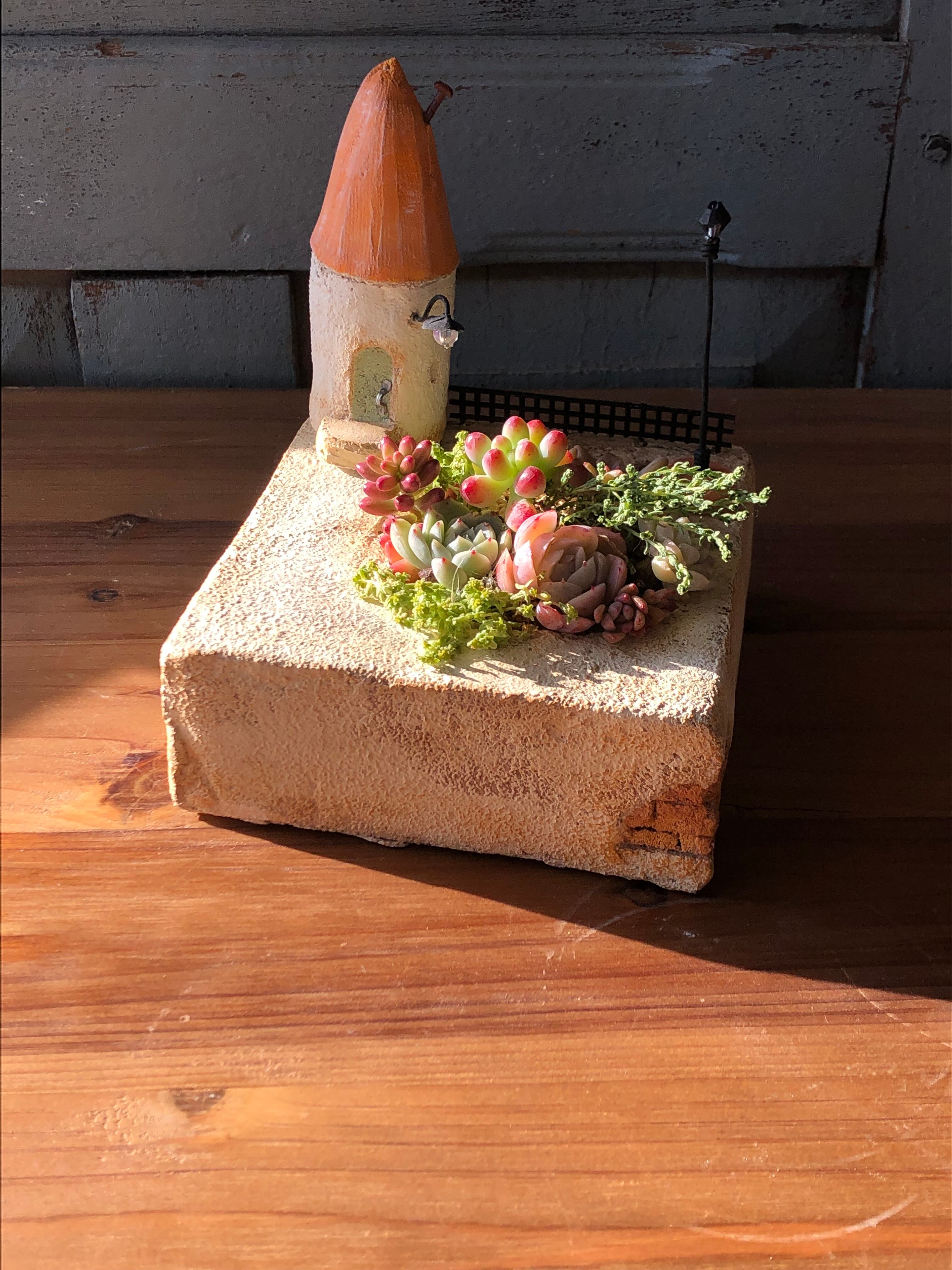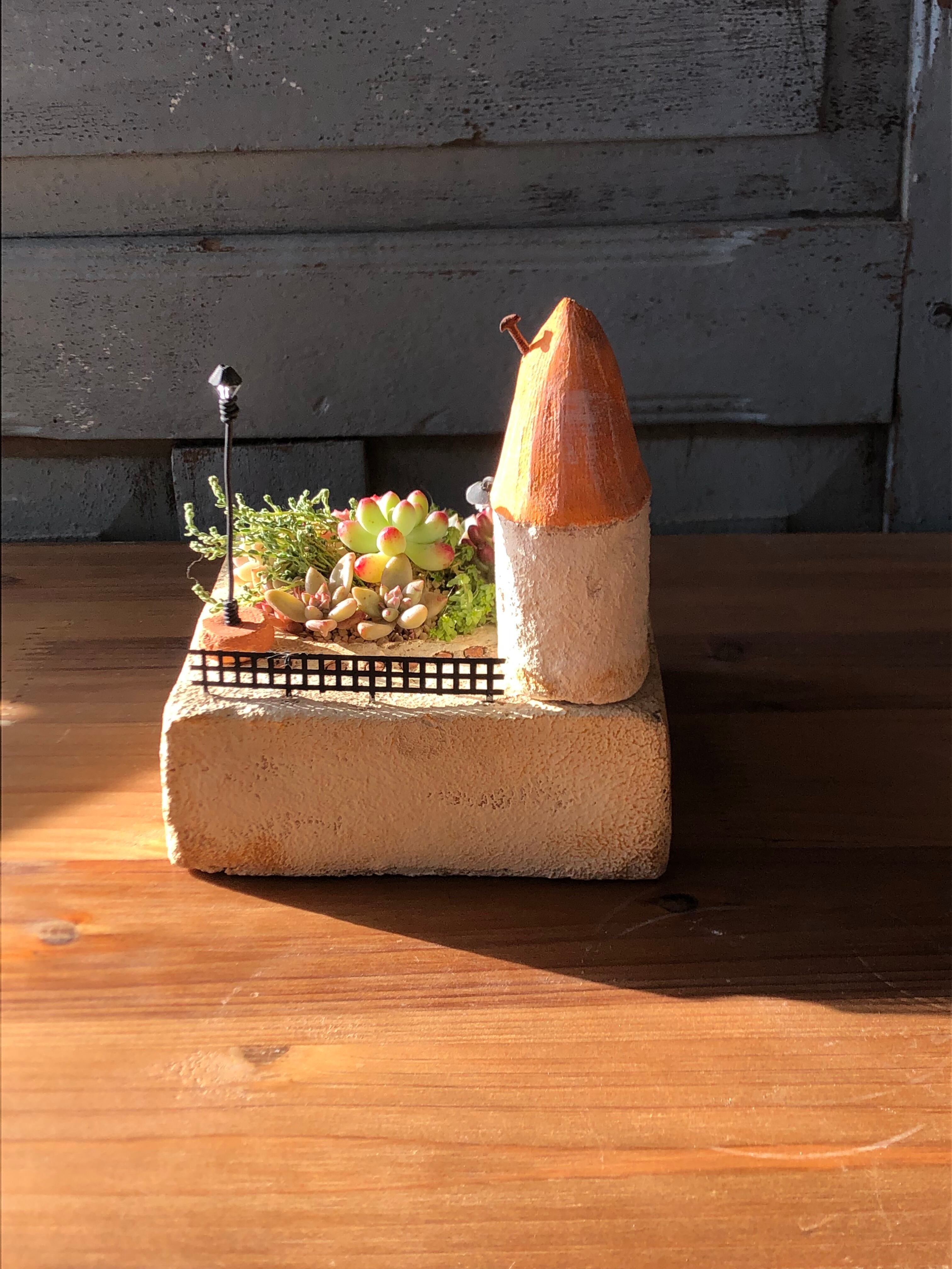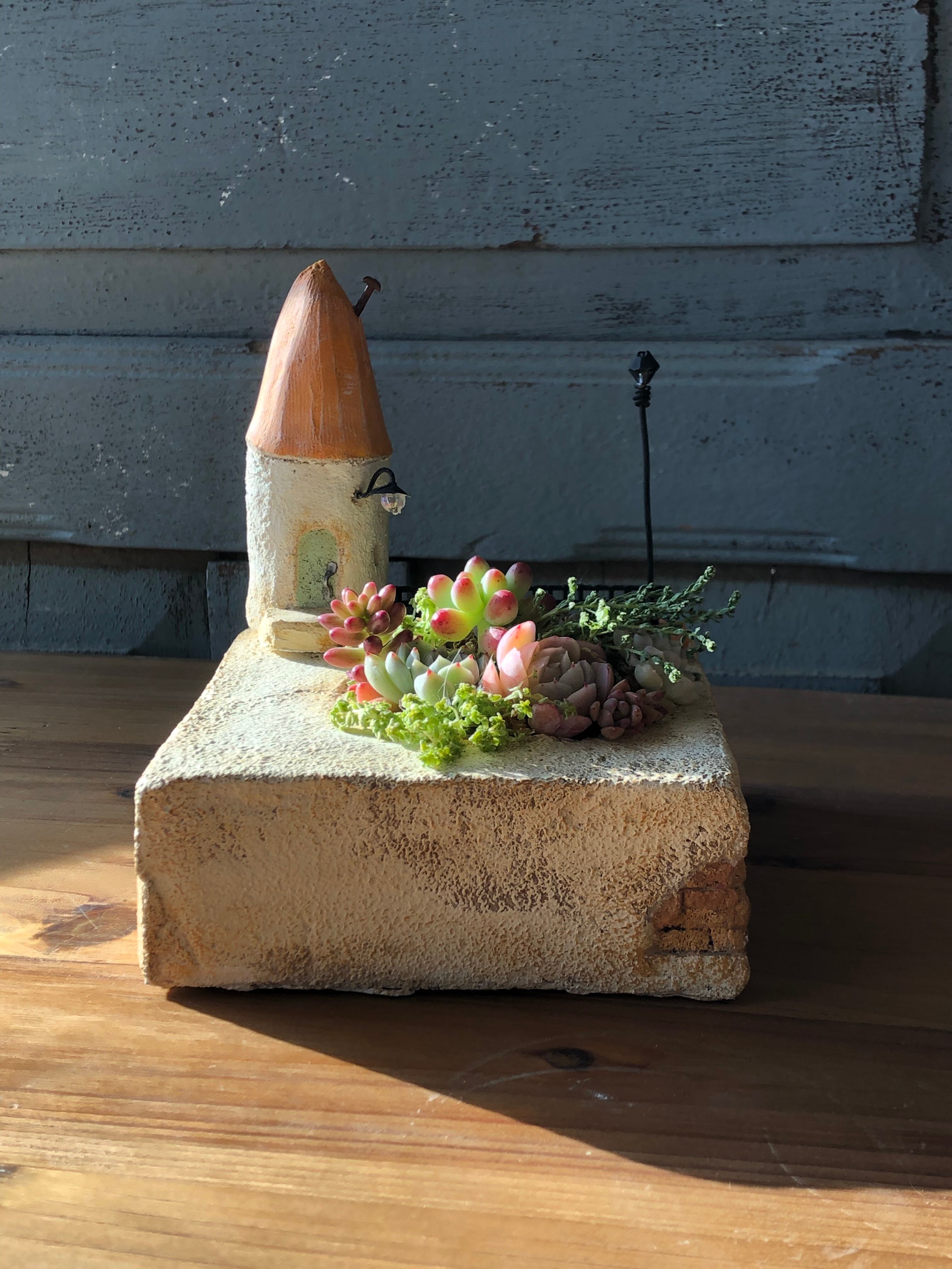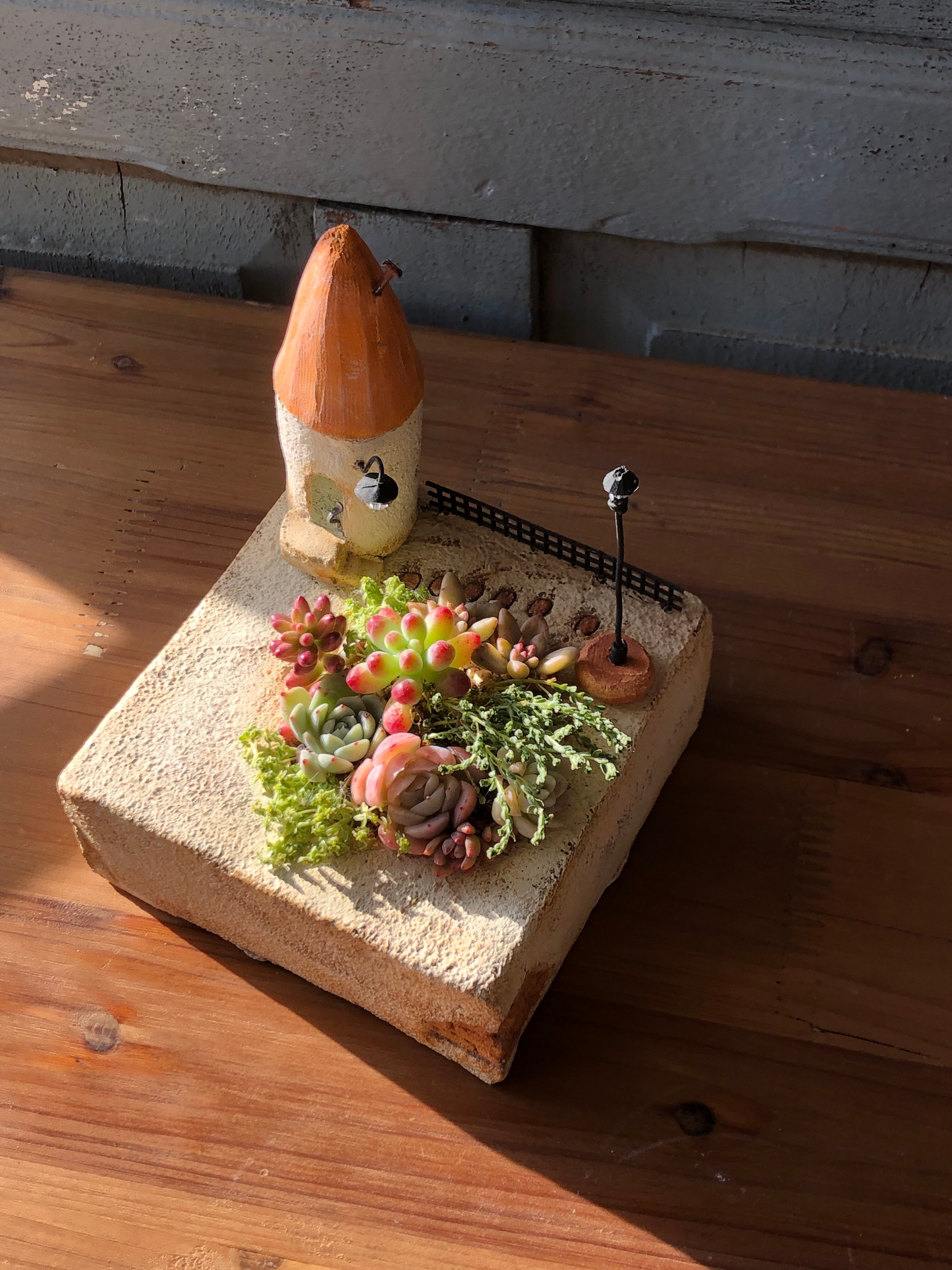 三角屋根のミニチュアガーデン(寄せ植え付き)